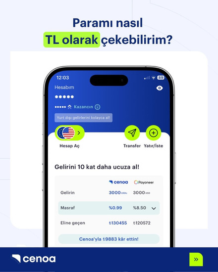 Cenoa’daki bakiyeni TL olarak çek!